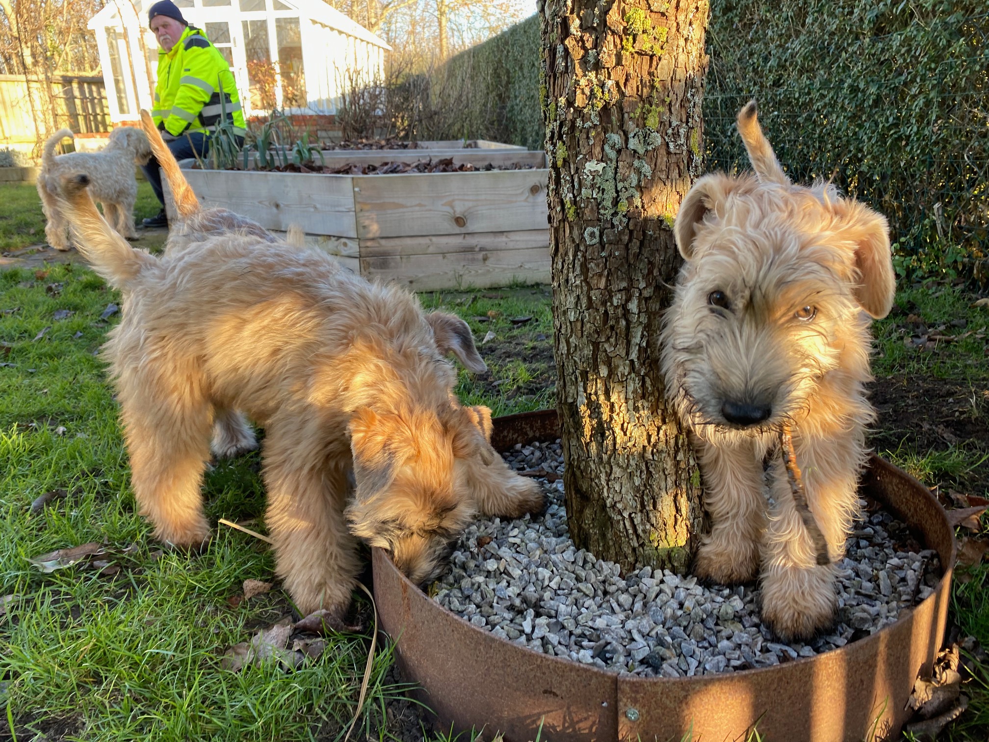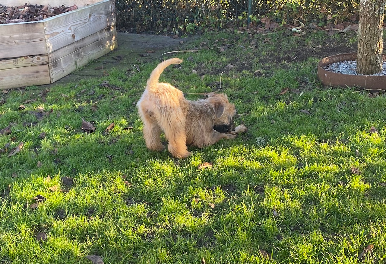 När du köper en wheaten valp från mig på Antikens kennel så är den uppfödd i hemmamiljö där valpen har blivit socialiserad och blivit van att hanteras. När de har har blivit äldre och är ett par veckor gamla vistas valparna ute i vår trädgård om vädret tillåter. När valpen flyttar från oss och hem till er är de som tidigast åtta veckor gammal, då ingår: